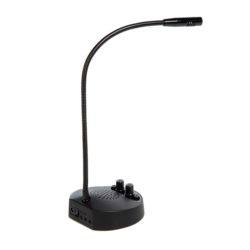علی رقم توان خروجی بالا و 5 واتی در یونیت مشتری و ابعاد بزرگ اسپیکر آن، یونیت اصلی در این مدل که بر روی میز کارشناس پذیرنده در گیشه مستقر میشود ابعاد بیش از حد بزرگی ندارد. علاوه بر این این مدل تمام امکاناتی که یک سیستم صوتی گیشه میبایست دارا باشد را به کاربران ارائه میدهد.