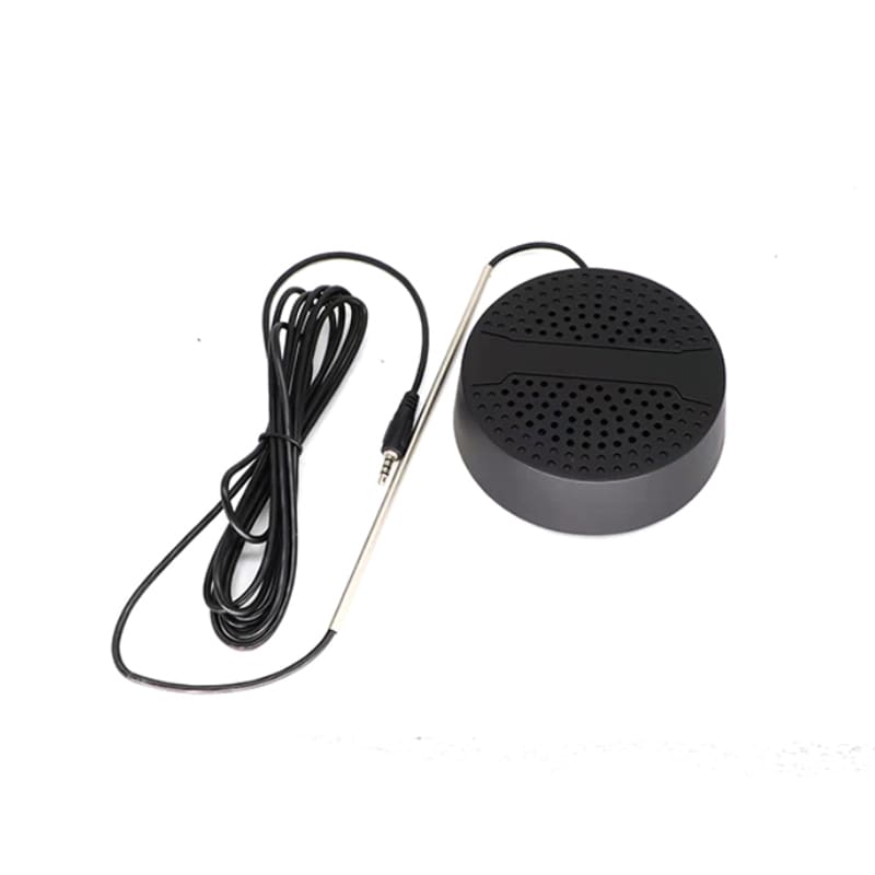 در بخش تحتانی یونیت اصلی سیستم صوتی گیشه کاواک مدل CT-3080 Plus دو نکته و گزینه قابل مشاهده هست. اول اینکه در این مدل تنظیمات میزان حساسیت میکروفون ها بوسیلهی پیچ های آبی رنگ مقاومت متغیر (پتانسیومتر) در دسترس هست. علاوه بر اون در مواردی که فضای روی میز بسیار محدود هست به شرط وجود دیوارهی عمودی مناسب در ساختار گیشه، امکان نصب آویز (دیواری) یونیت اصلی در این مدل فراهم هست.