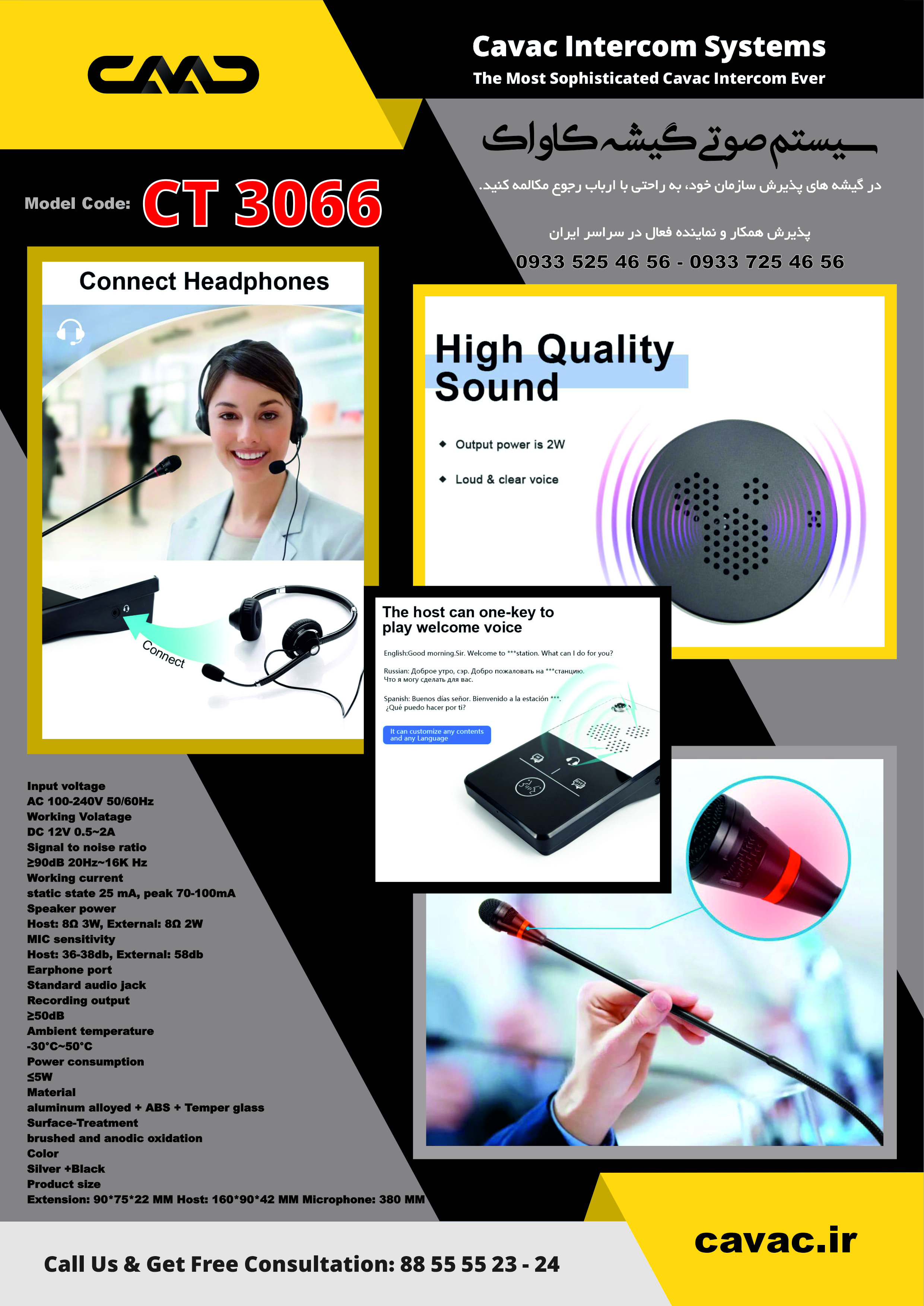 وضوح و قدرت صدایی که سیستم صوتی گیشه کاواک مدل CT 3066 ایجاد می کند با هیچ یک از سایر نمونه های موجود در بازار قابل قیاس نیست. گارانتی یکساله و خدمات پس از فروش پنج ساله ی کاواک تضمین کننده ی رضایت شما خواهد بود.